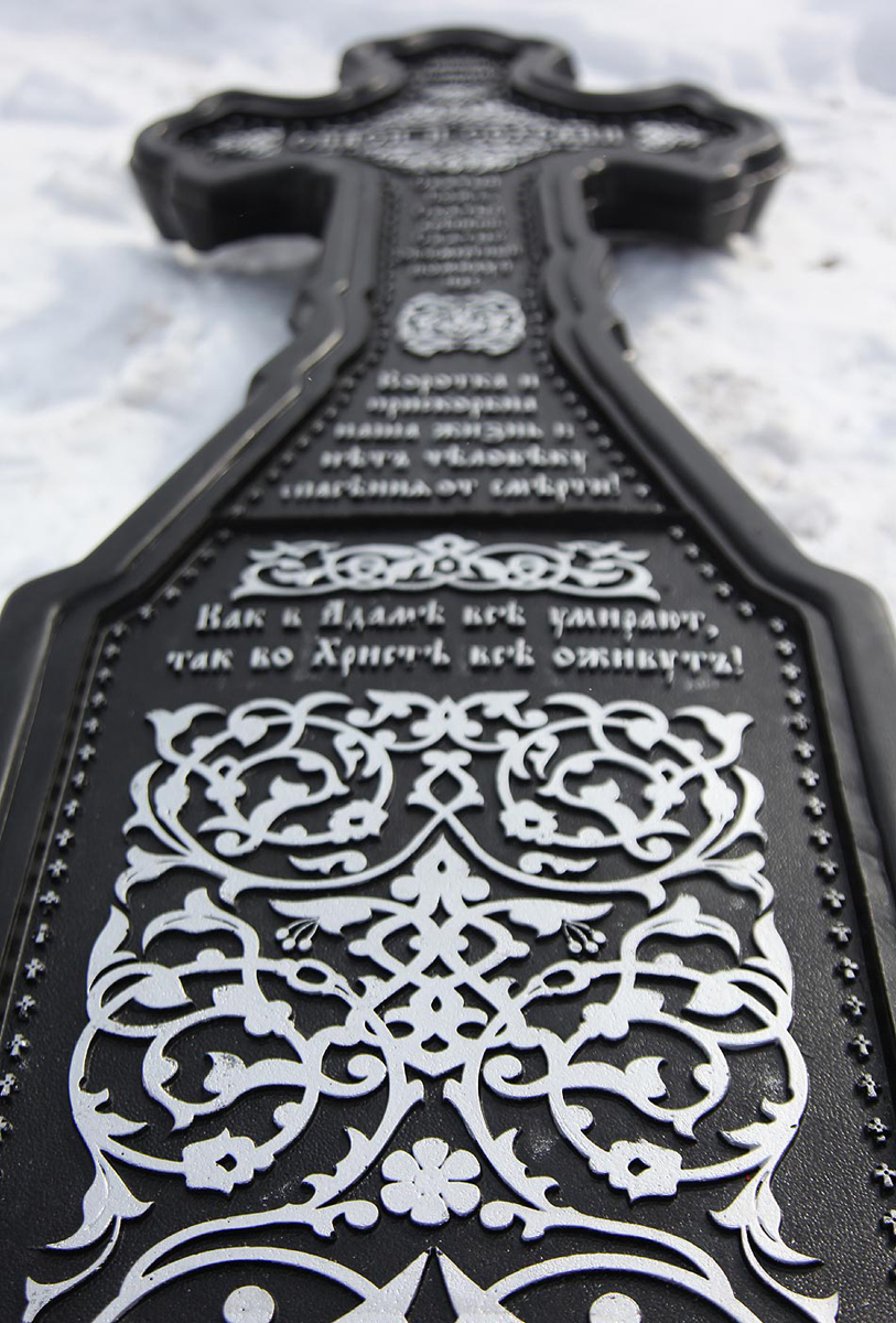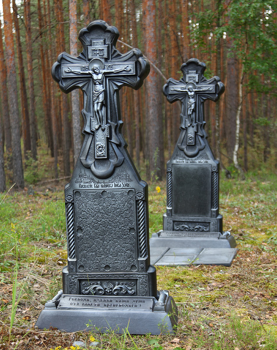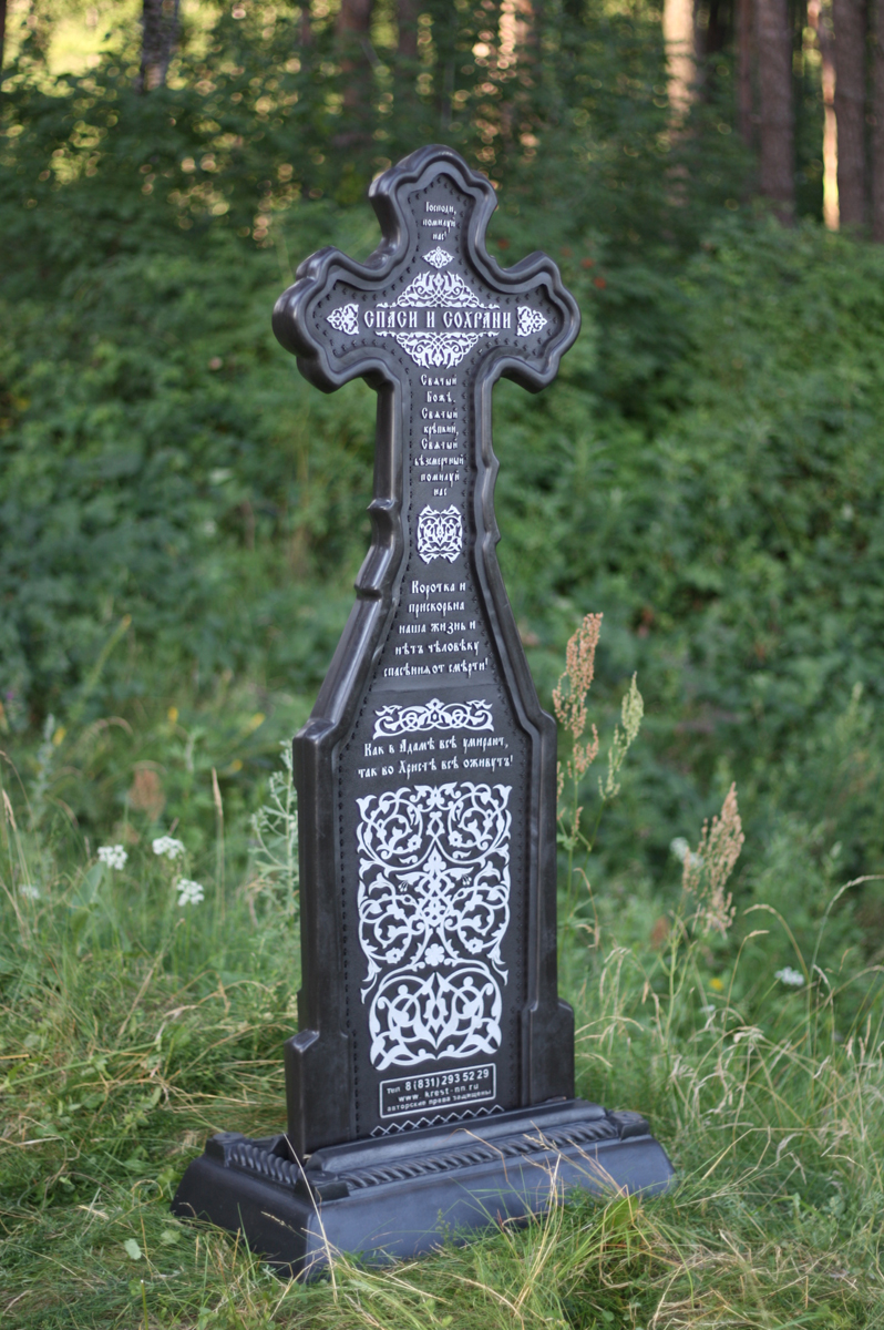 Поскольку материал на 80% состоит из натуральных наполнителей он не горит, не трескается, не впитывает воду, поэтому не боится мороза и других погодных явлений. Сам крест монолитный, то есть не пустотелый, поэтому такой прочный и долговечный.